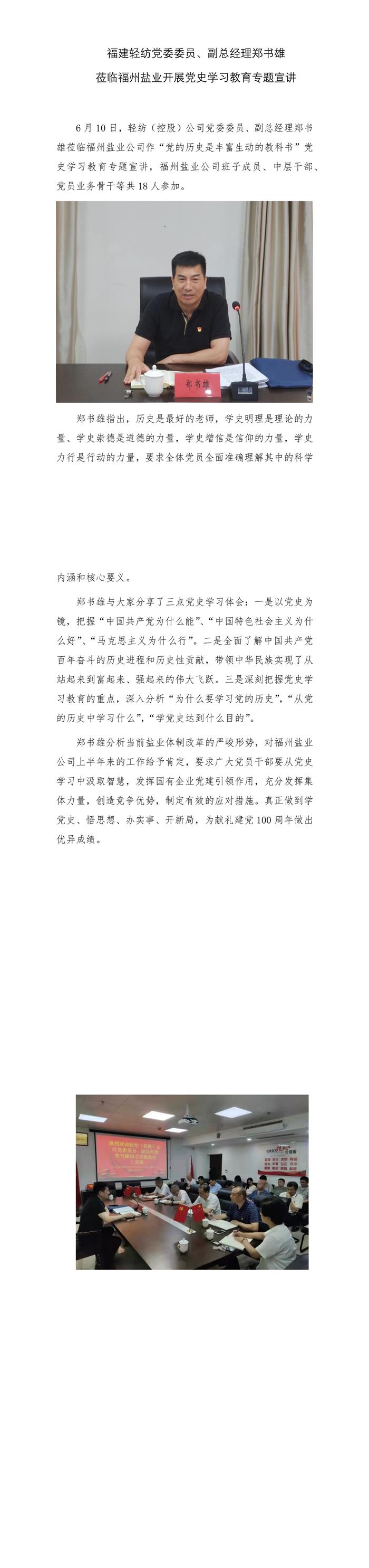 福建轻纺党委委员、副总经理郑书雄莅临福州盐业开展党史学习教育专题宣讲