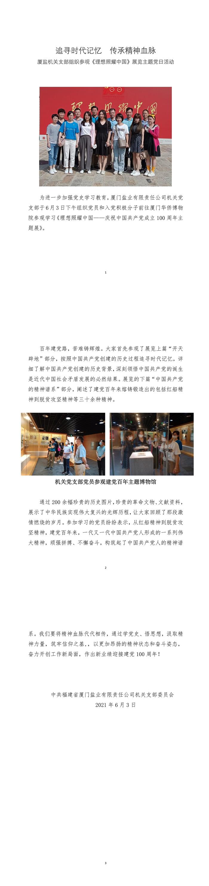 厦盐机关支部组织参观《理想照耀中国》展览主题党日活动