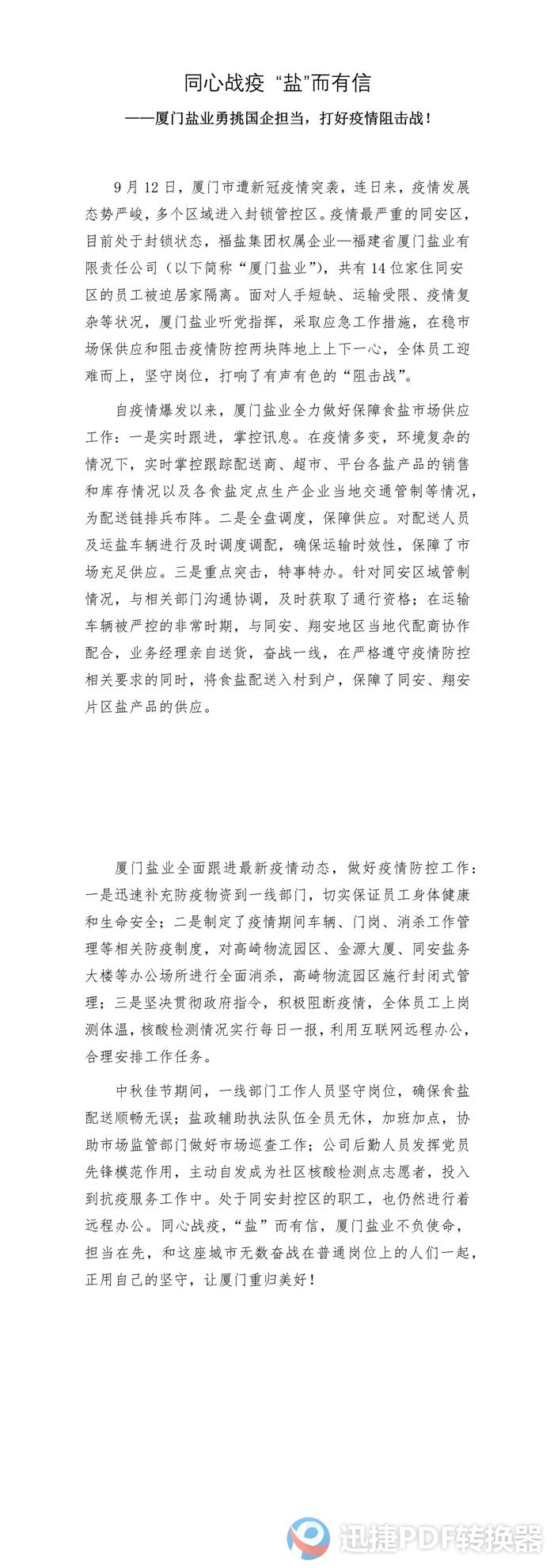 同心战疫 “盐”而有信——厦门盐业勇挑国企担当,打好疫情阻击战!