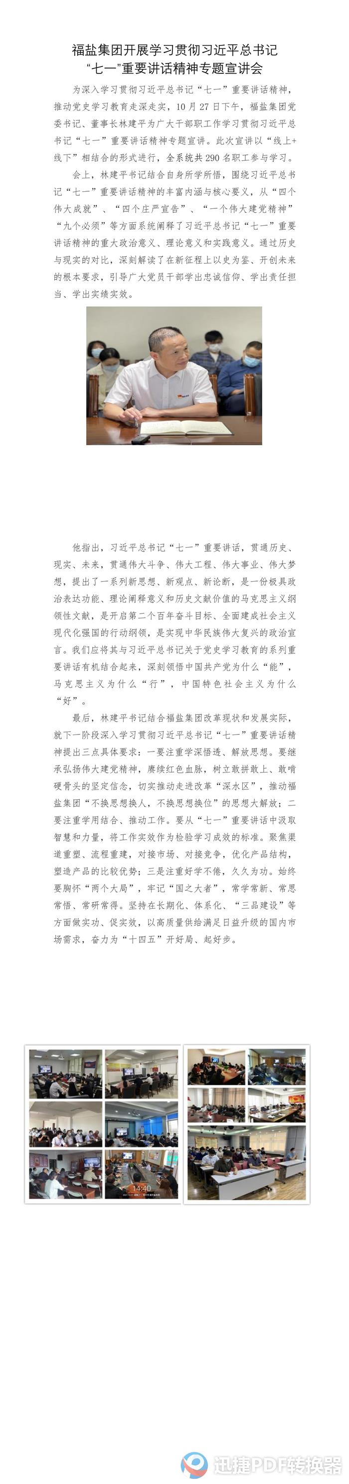 福盐集团开展学习贯彻习近平总书记“七一”重要讲话精神专题宣讲会