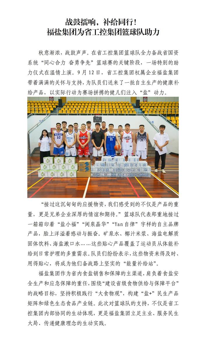 战鼓擂响,补给先行!福盐集团为省工控集团篮球队助力