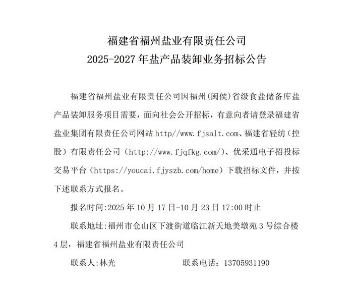 发布者:福建省福州盐业有限责任公司 发布时间:2025/10/17 8:06:00 阅读:
