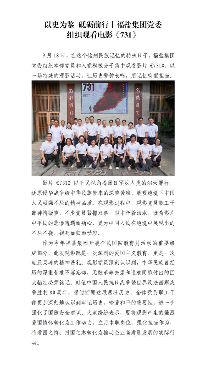 以史为鉴 砥砺前行丨福盐集团党委组织观看电影《731》
