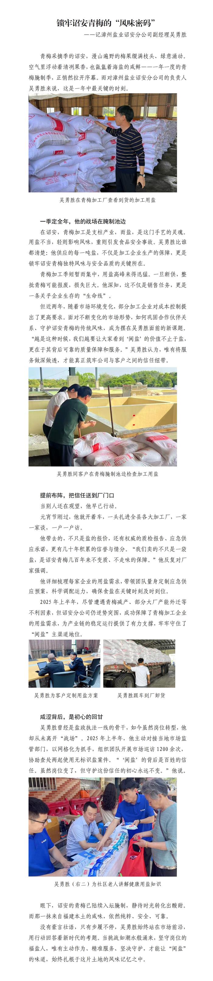 锁牢诏安青梅的“风味密码”——记漳州盐业诏安分公司副经理吴勇胜