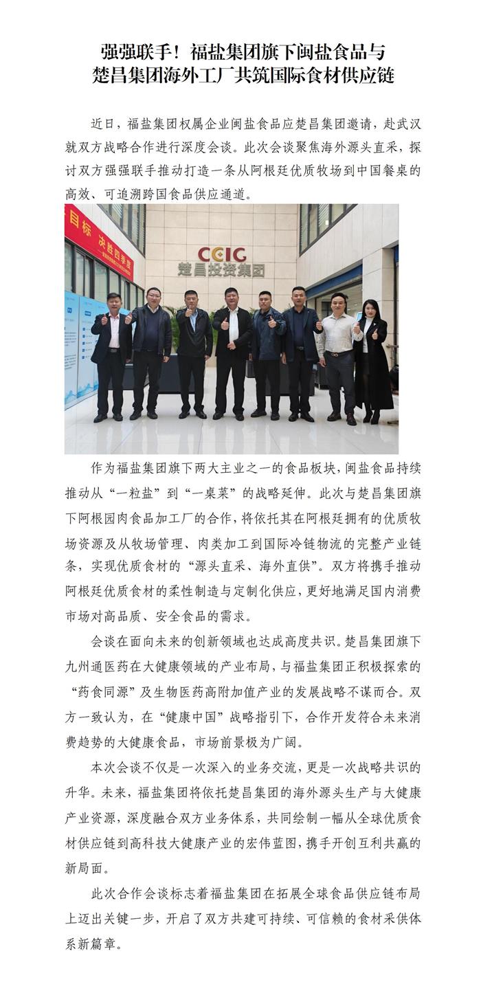 强强联手!福盐集团旗下闽盐食品与楚昌集团海外工厂共筑国际食材供应链