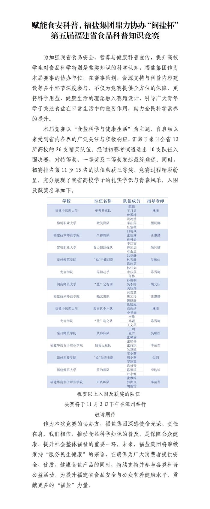 赋能食安科普,福盐集团鼎力协办“闽盐杯”第五届福建省食品科普知识竞赛