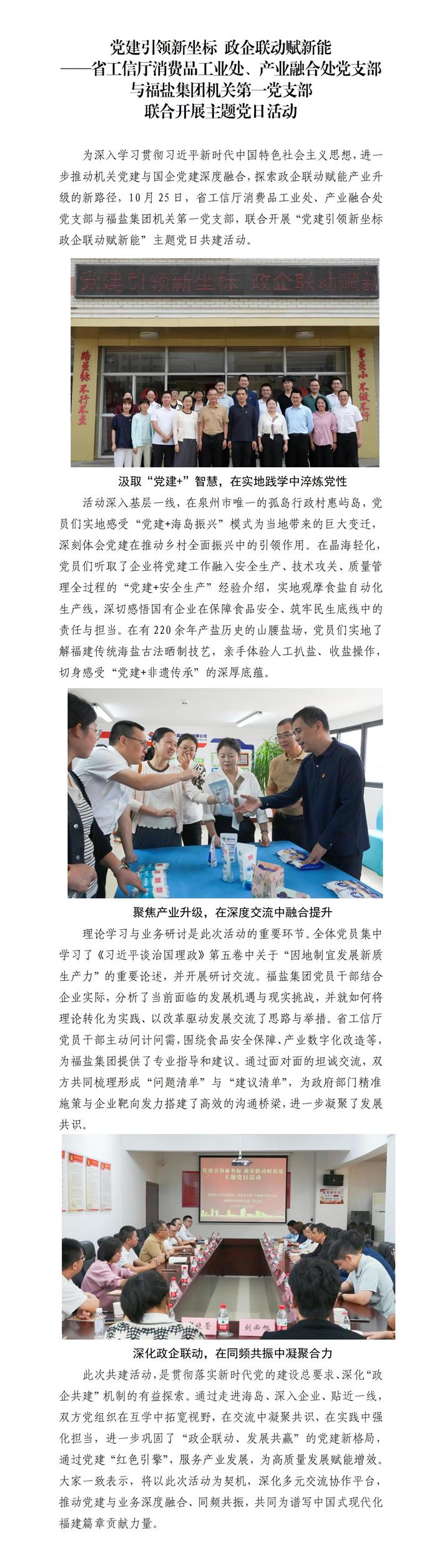 省工信厅消费品工业处 产业融合处党支部与福盐集团机关第一党支部联合开展主题党日活动
