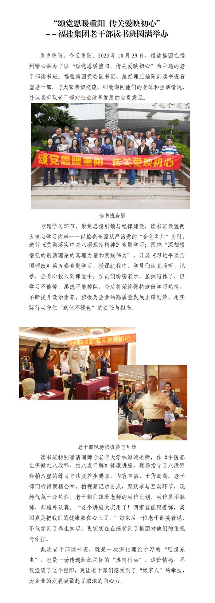 “颂党恩暖重阳 传关爱映初心”--福盐集团老干部读书班圆满举办