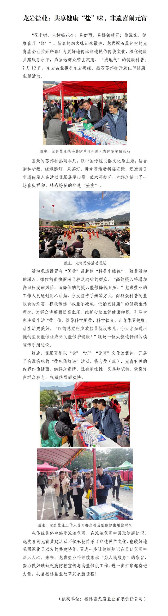 龙岩盐业:共享健康“盐”味,非遗喜闹元宵